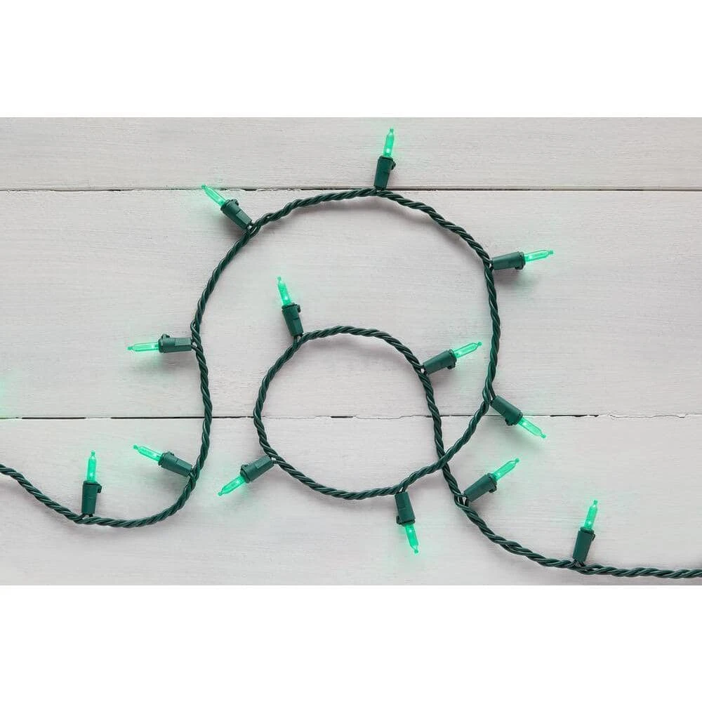 Amplify the seasonal cheer throughout your home with this Christmas light set. The 28.8 feet of lighted length brighten up bushes on your lawn, while the 100 green mini LEDs add a festive sparkle to your entryway, foyer or Christmas tree. Able to connect to up to 29 other light sets from a single socket, this Christmas light set makes it easy to cover large buildings or fencing, and the sturdy construction makes it ideal to decorate indoor or outdoor spaces.
