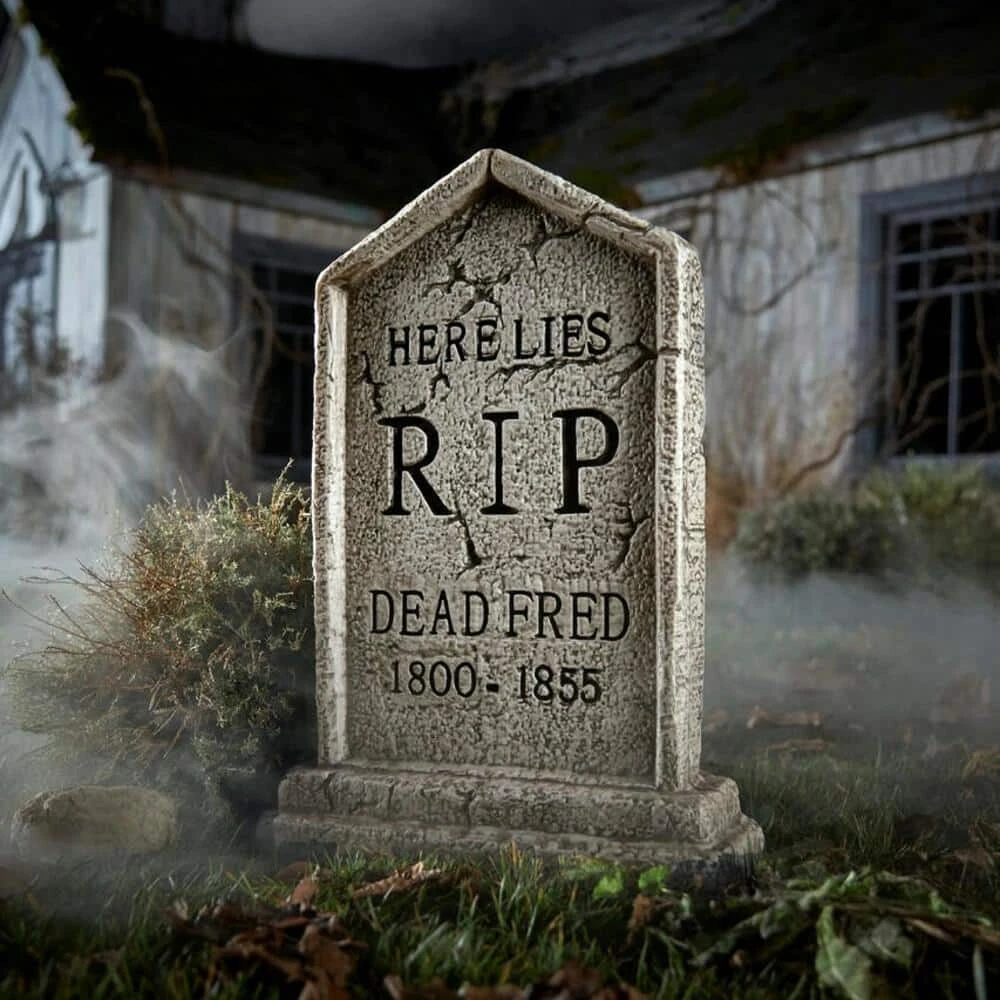 Fill your guests with unbound dread by placing this 24-inch blow mold tombstone in your yard’s Halloween-themed graveyard scene. The faux stone finish in combination with detailed cracks and ornamentation helps this eerie tombstone showcase a terrifyingly convincing design, making your yard’s spooky display the talk of the neighborhood throughout the trick-or-treat season. This gray-tone blow mold tombstone features a weighted base for extra stability in case of heavy winds, and the durable plastic material allows stress-free outdoor placement for frights and delights no matter the weather.