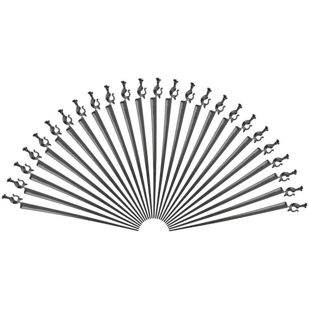 Create a field of festive shimmer when you use these Home Accents Holiday outdoor light stakes. The 12-inch height makes it easy to position C7, C9, rope and mini lights along your walkway or garden path, and the durable polypropylene construction offers lasting use throughout the winter months. These stakes drive effortlessly into the ground for stable placement, while the simple design clips onto lights for hassle-free setup. With 25 pieces in each pack, these Home Accents Holiday outdoor light stakes provide an ample supply to complete your seasonal scene.