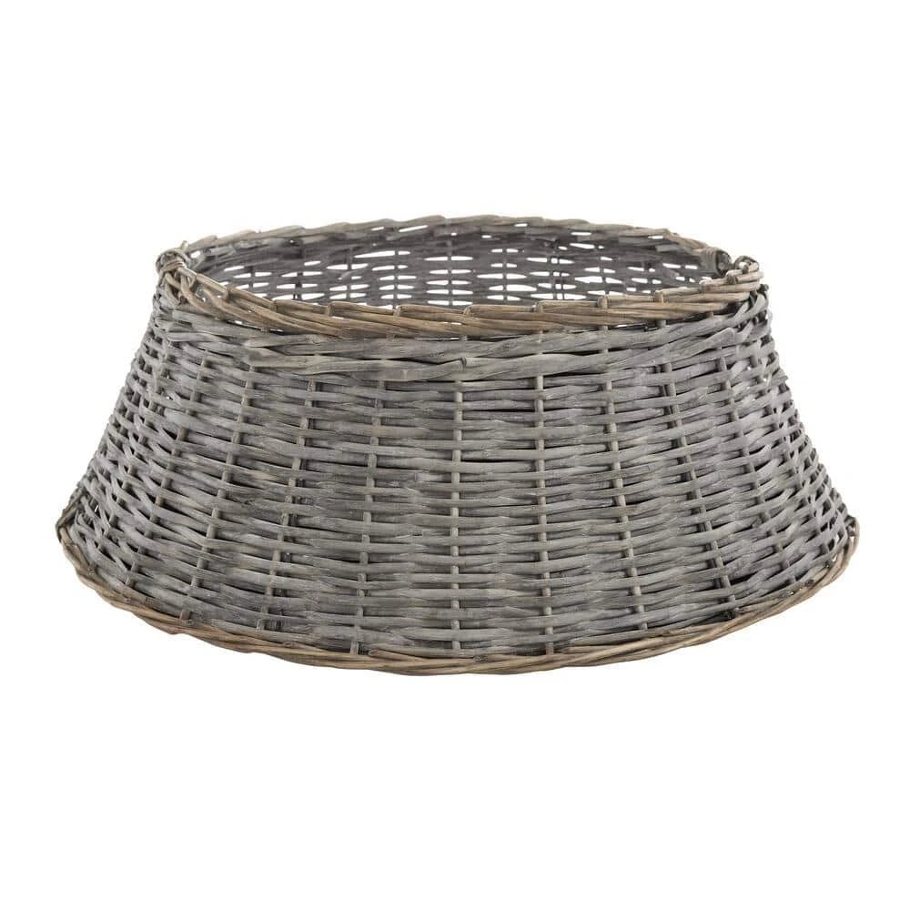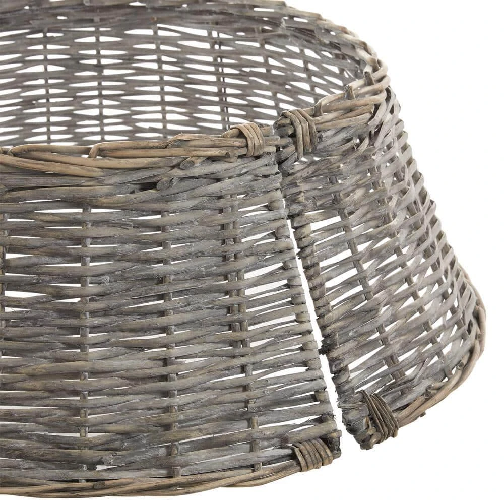 - Includes two-piece brown rattan wicker Christmas tree collar