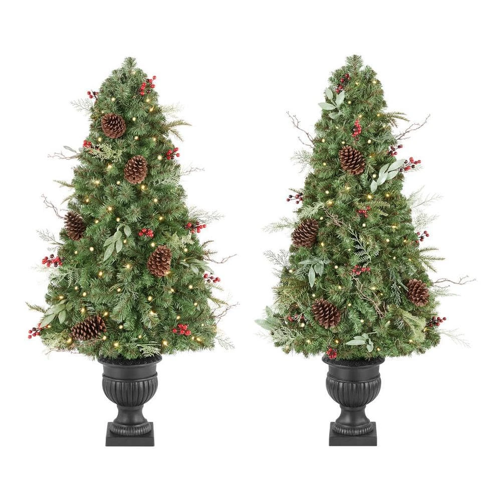 Home Accents Holiday 5 ft Woodmore Potted Christmas Tree 2-Pack