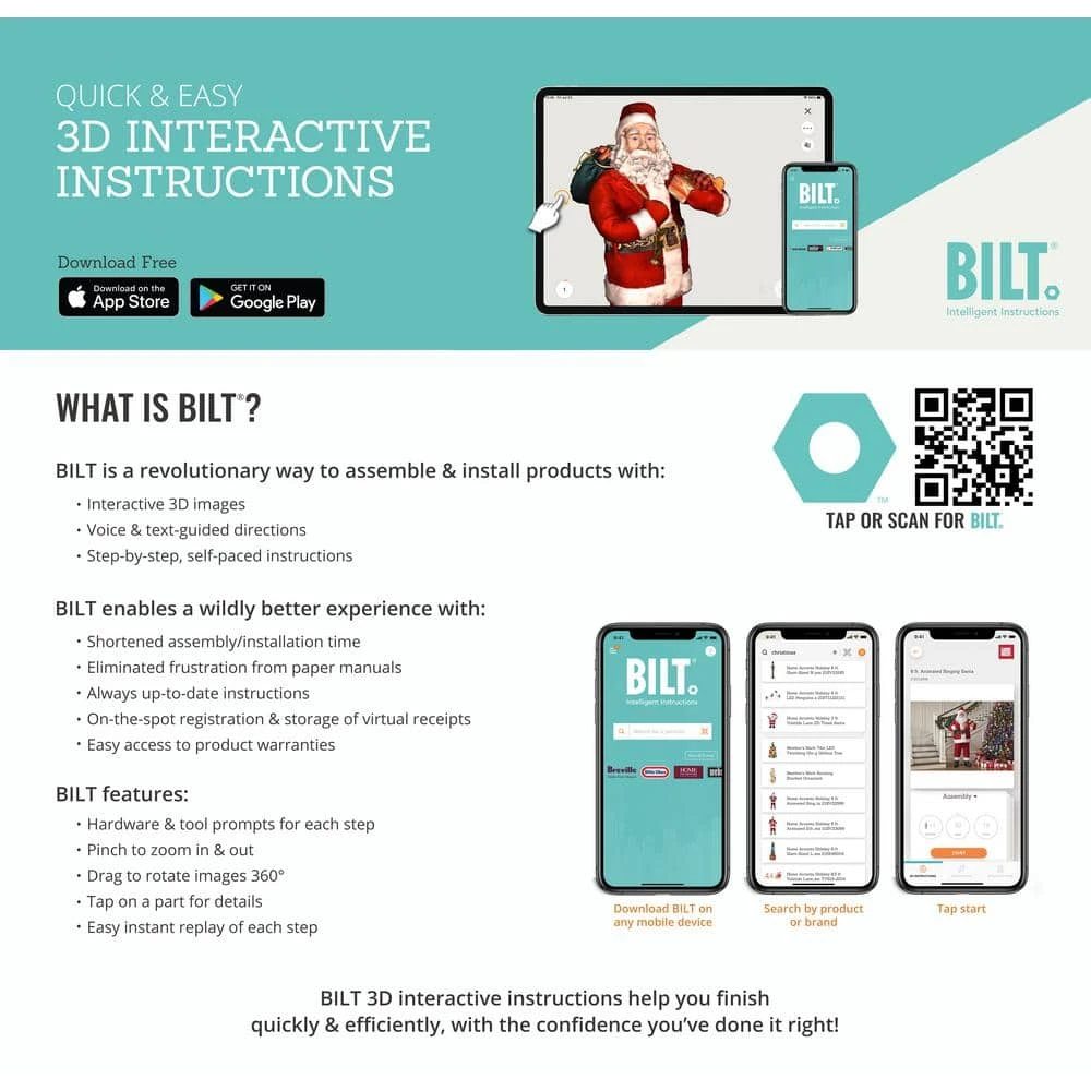 - Santa’s body turns and mouth moves for a lifelike look