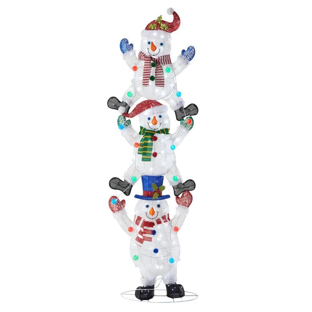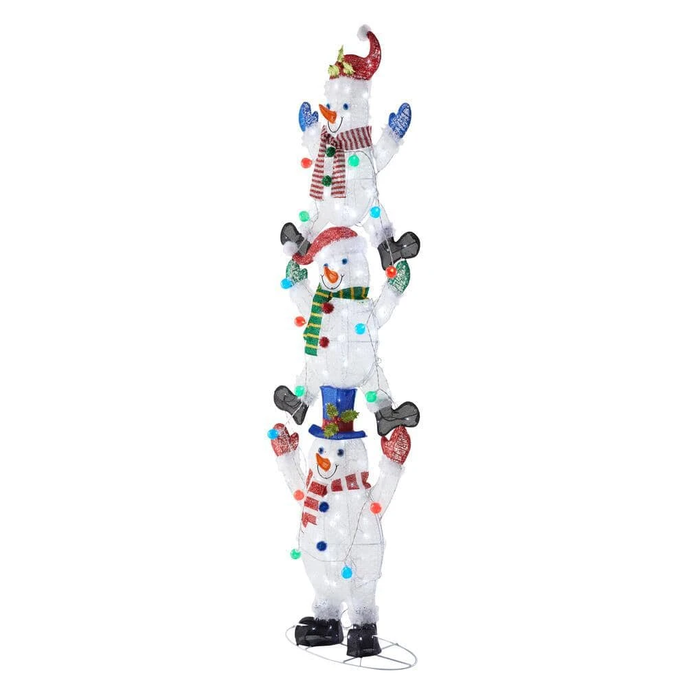 Home Accents Holiday 7 ft Cool White LED 3 Stacked Snowmen Holiday Yard Decoration