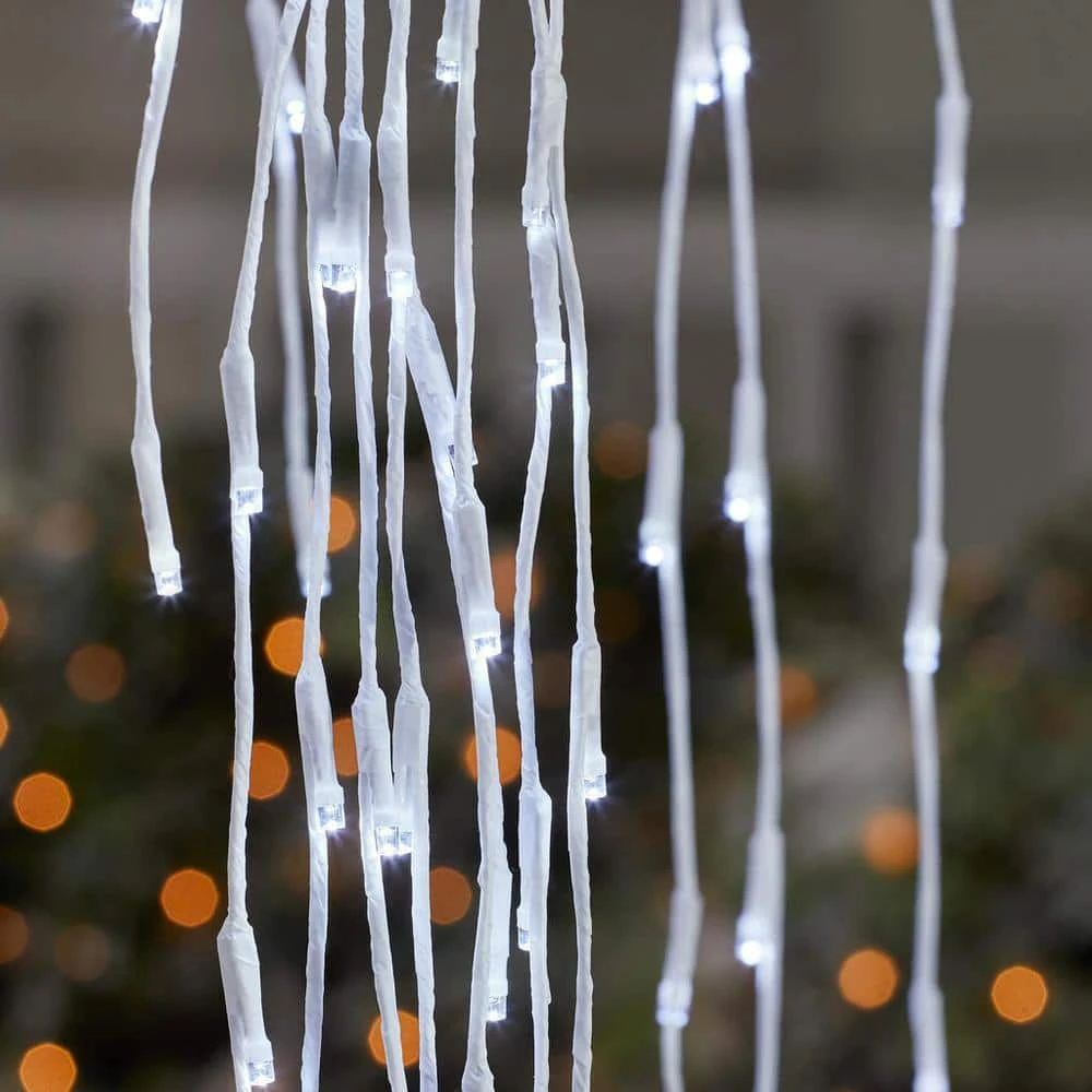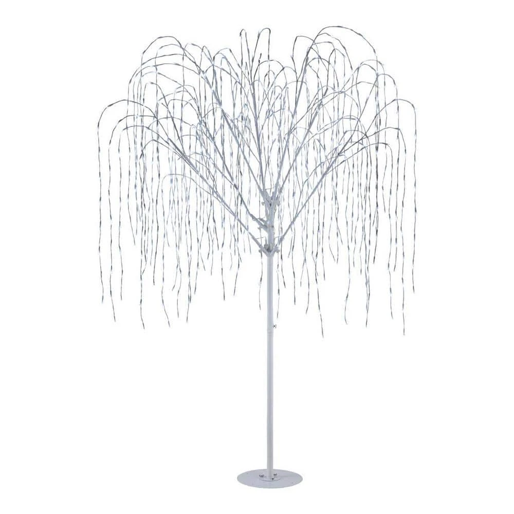Create a snow-inspired winter scene with this 7-foot pre-lit willow tree. The 800 pure white LEDs create a brilliant lighting effect, illuminating your outdoor space throughout the night. A timer lets you set the lights to power on and off for hassle-free operation, while the included ground stake keeps this whimsical willow firmly in place. With a white metal frame, this pre-lit willow tree offers lasting durability and makes a beautiful addition to your holiday decor theme.