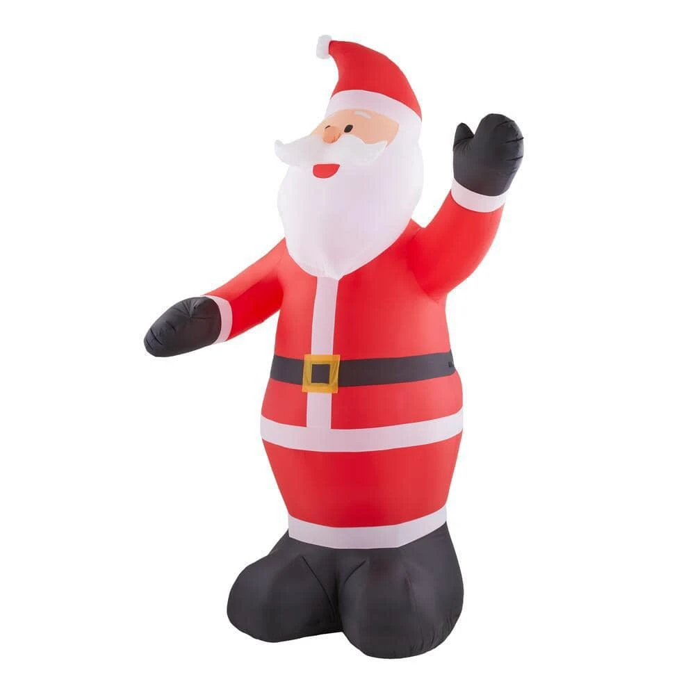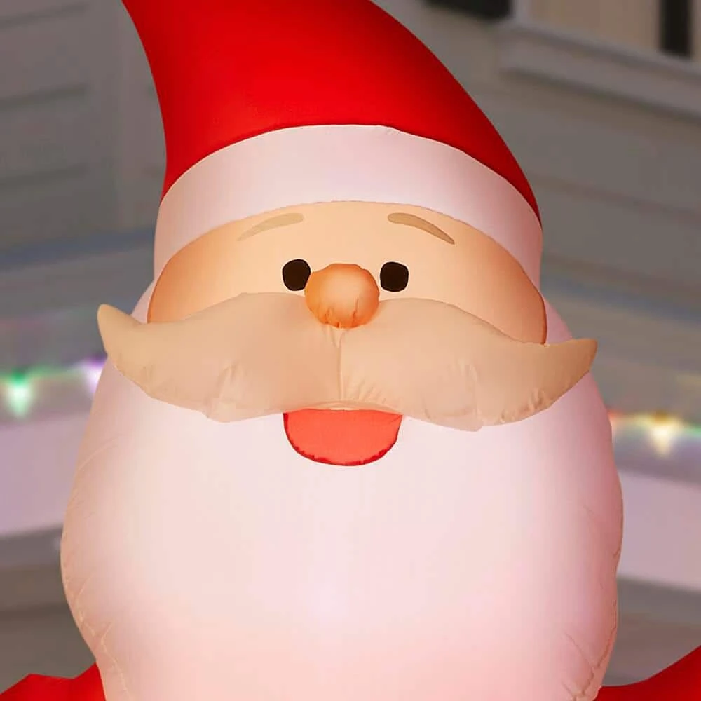 Capture the spirit of the season with this 9-foot pre-lit Airblown inflatable Santa. Dashingly dressed in his classic red suit, Saint Nick offers a warm, festive welcome to arriving family and friends, while the integrated LEDs produce a jolly shimmer to add sparkle to your celebrations. An included fan and self-inflating build ensure quick and simple setup, and stakes and tethers keep Santa firmly anchored on the ground. This weather-resistant Airblown inflatable Santa deflates easily for convenient storage, and a 5.25-foot cord gives you freedom over placement.