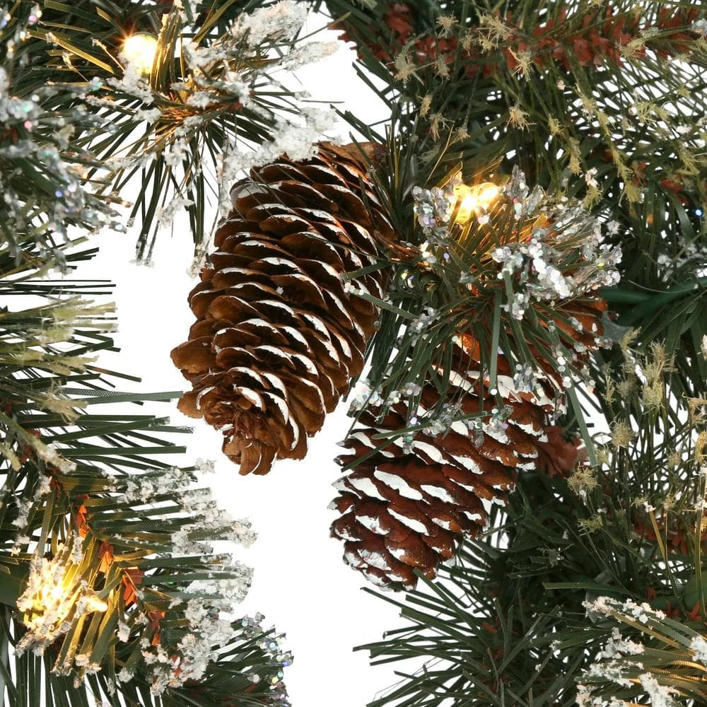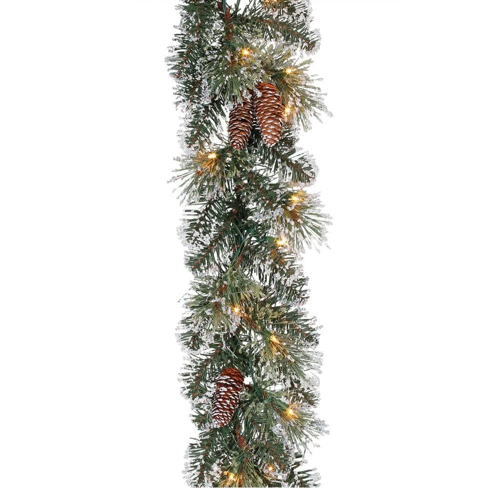 - Pre-lit artificial pine garland provides gorgeous greenery