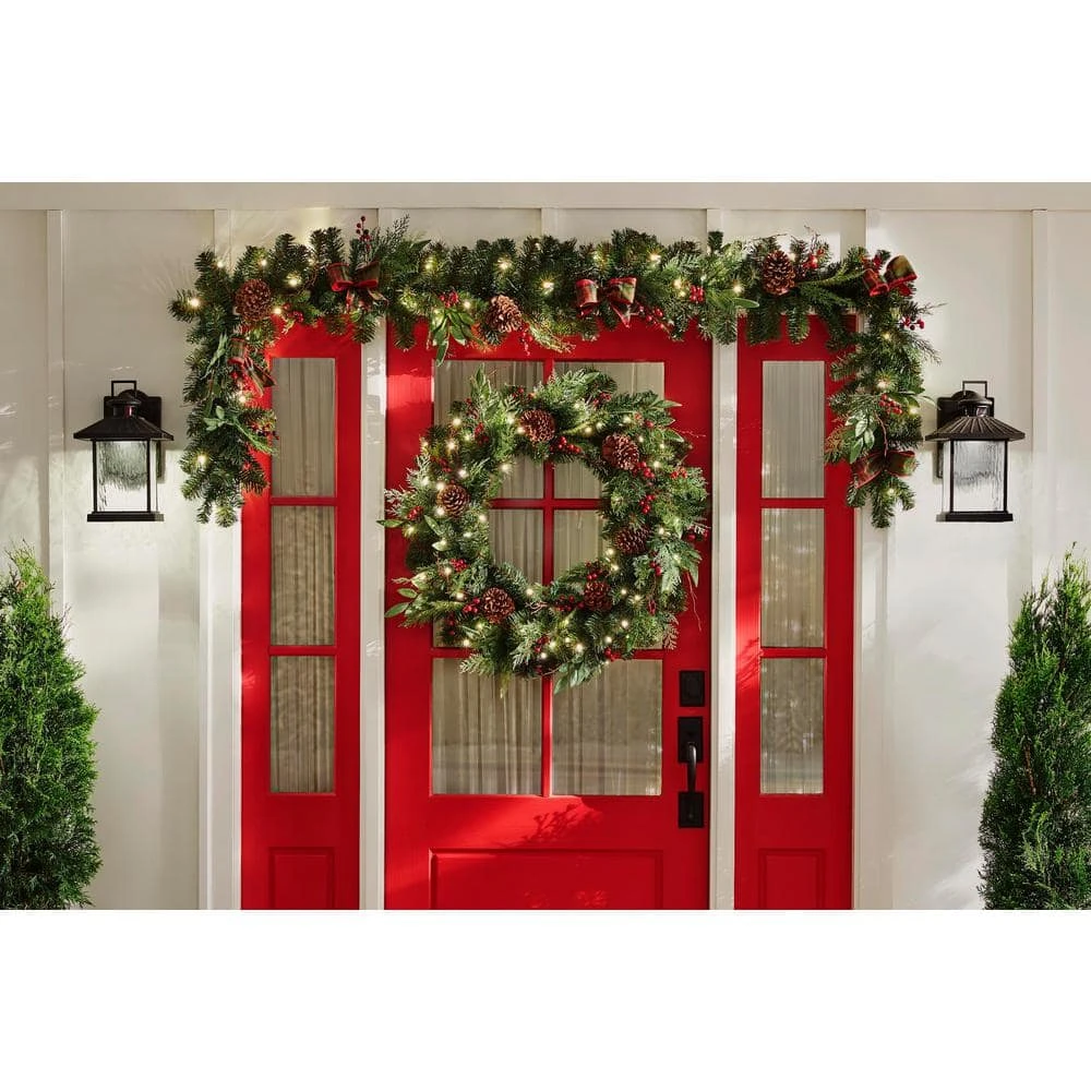 - Pre-lit pine artificial Christmas garland brings cheer