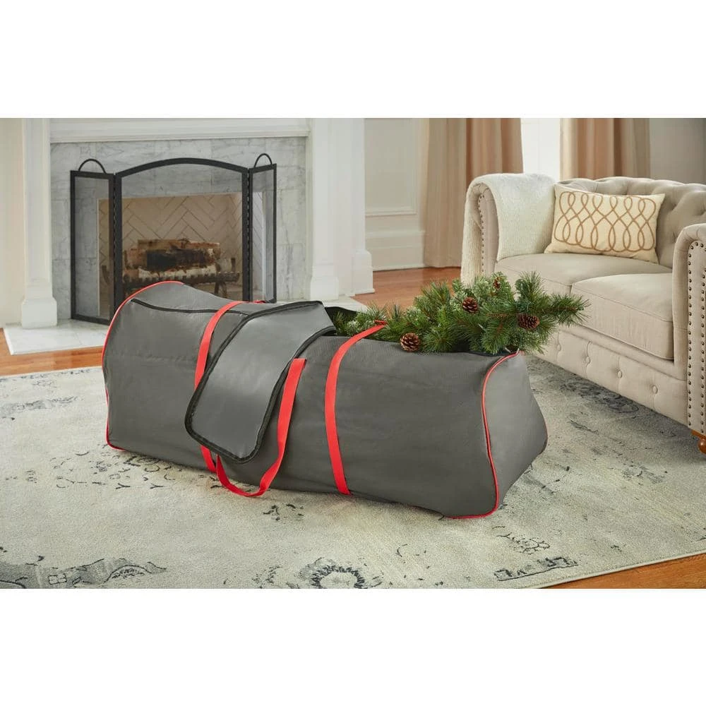 Prep your family’s Christmas tree for storage with this artificial tree bag. The generous dimensions accommodate trees measuring up to 9 feet in height for versatility, while the zippered closure keeps branches and limbs contained within. Built-in wheels and an integrated carrying handle make it easy to transport your tree to the garage or storage shed. This bag boasts durable polyethylene construction and reinforced seams for long-lasting use. With a tear-proof design, this artificial tree bag protects your holiday centerpiece against dust, moisture and damage.