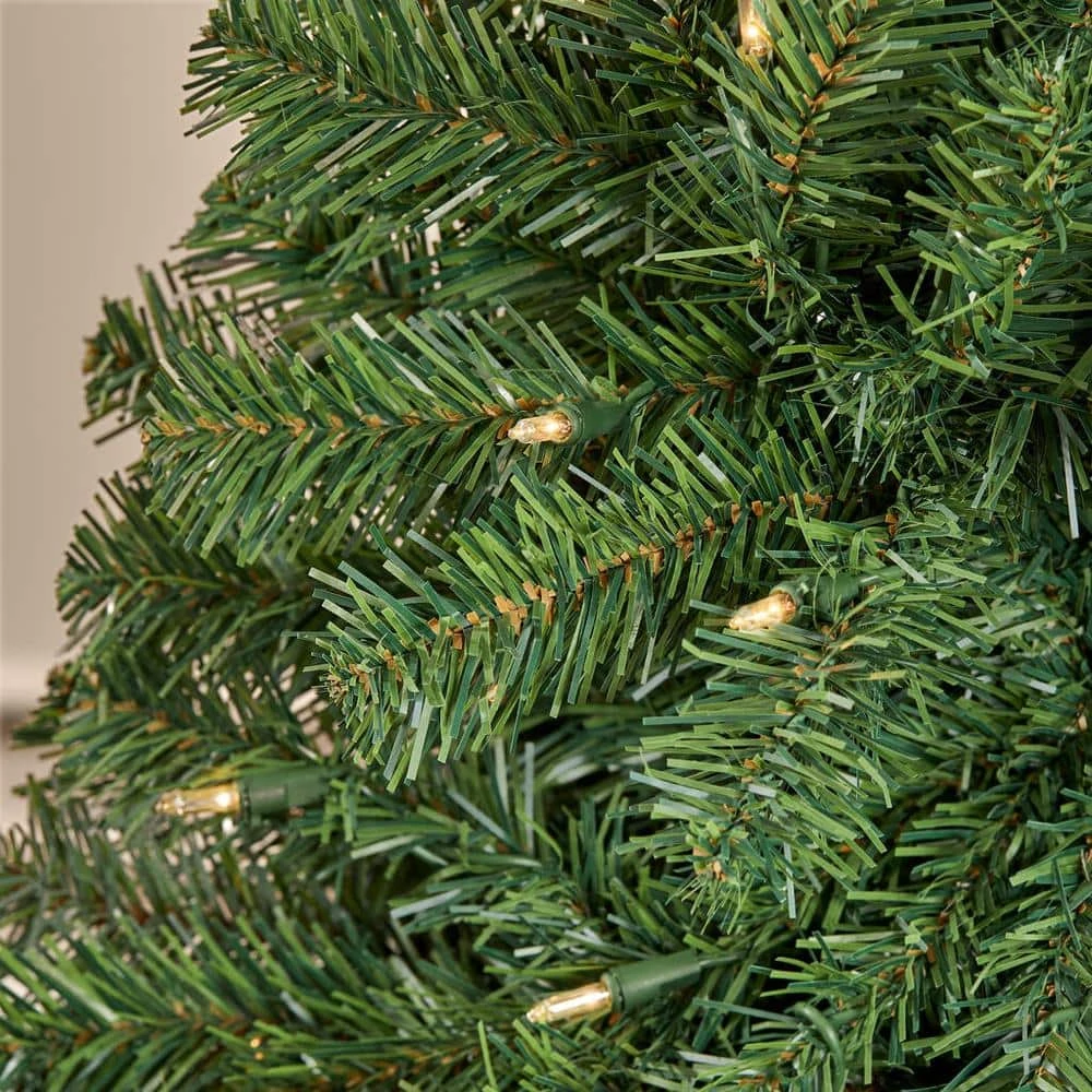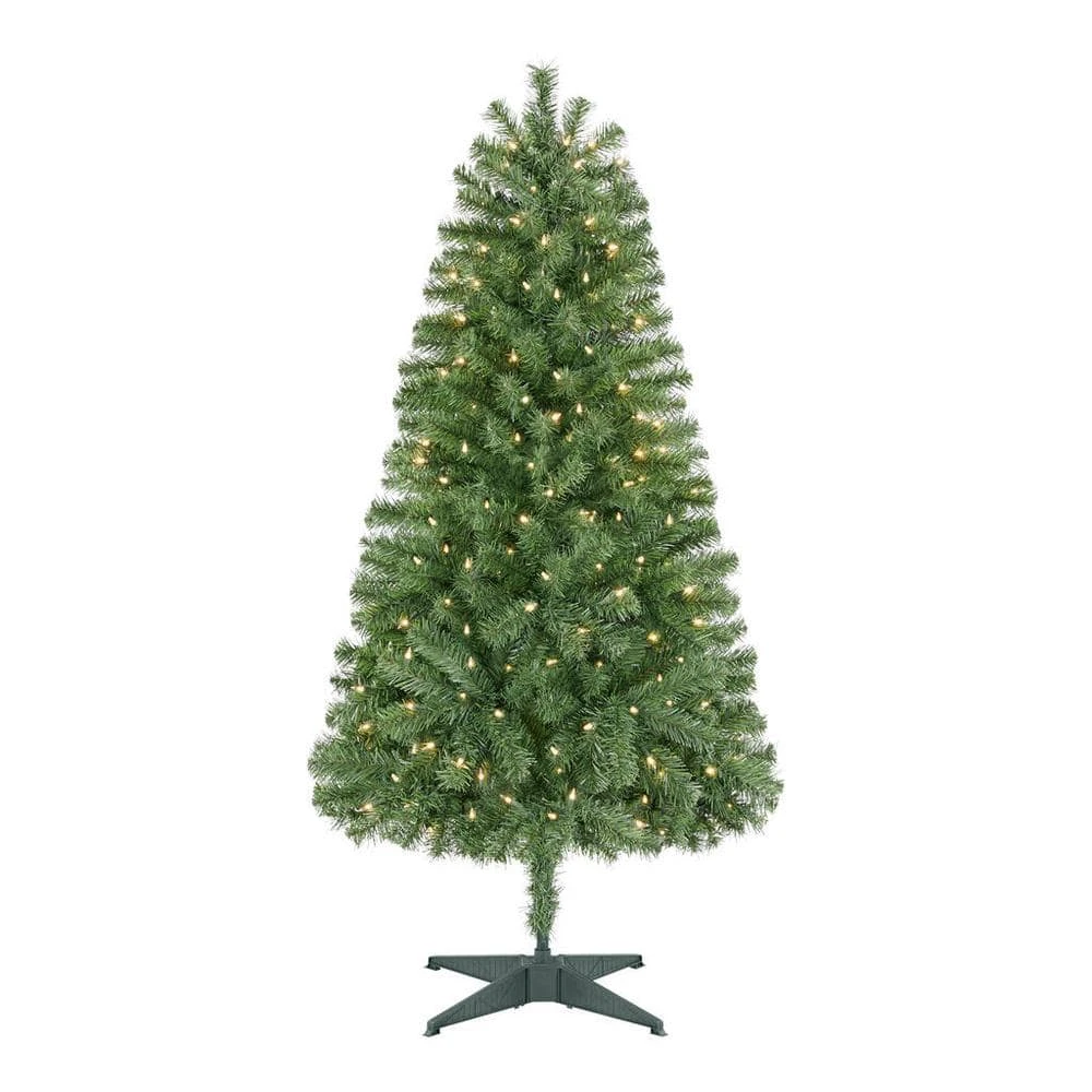 Capture the spirit of the season with this Woodtrail Norway Spruce artificial green fir Christmas tree. The 5-foot tall profile makes it easy to fit in most rooms, while the 370 branch tips create a lush look for a touch of realism. Fitted with 200 clear white mini LEDs, this festive accent sparkles and glows to add a vibrant accent to your holiday gatherings. This Woodtrail Norway Spruce artificial green fir Christmas tree is flame resistant, allowing safe placement near your fireplace.